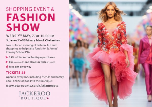 The incredible Jackeroo boutique is coming back to St James' Primary to put on a Fashion Show and Shopping Night, showcasing their spring/summer collection.