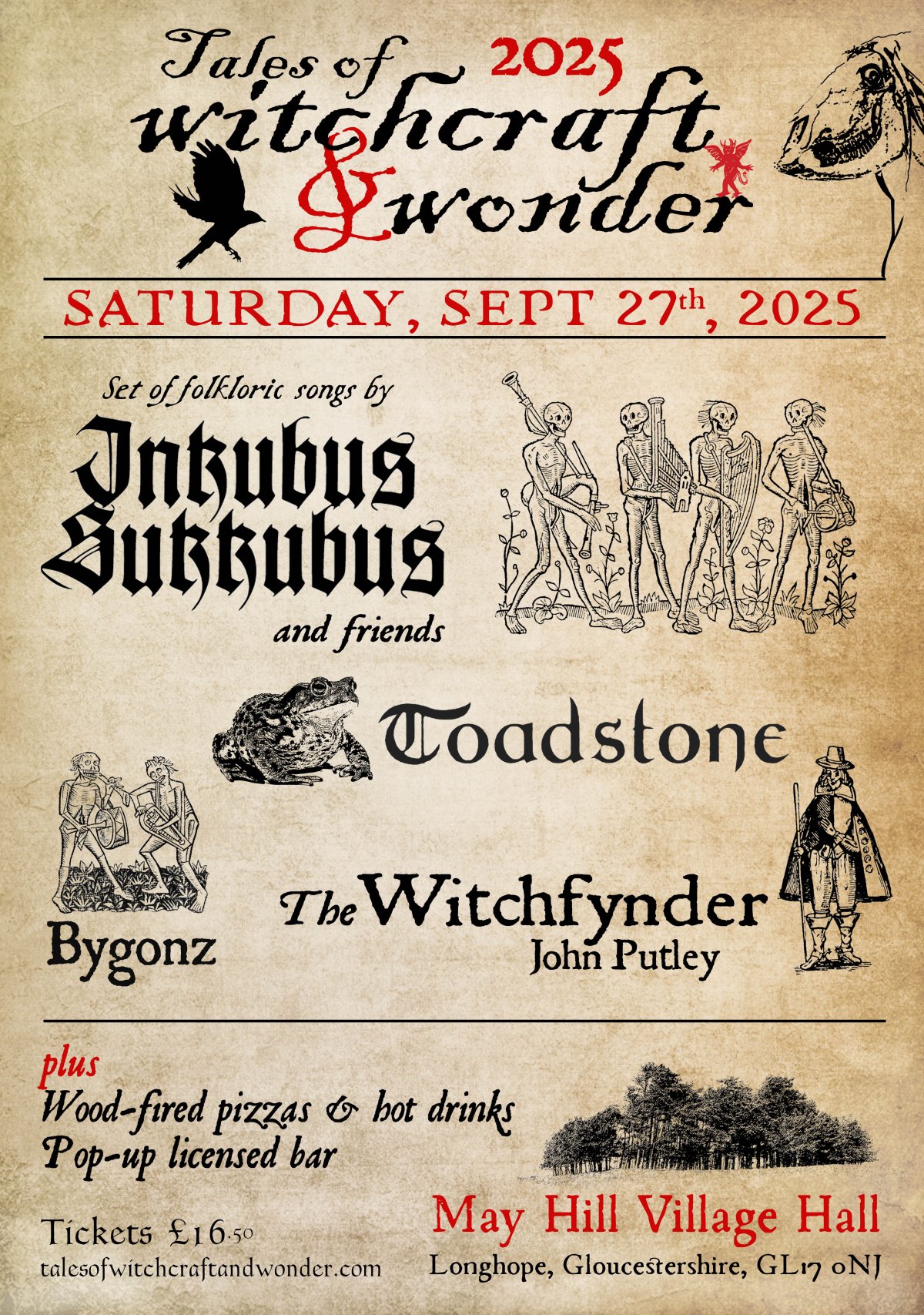 The Tales of Witchcraft & Wonder events are organised by Gloucestershire band Inkubus Sukkubus (est 1989) as a way of celebrating the dark folklore and customs of Gloucestershire, and Great Britain as a whole.