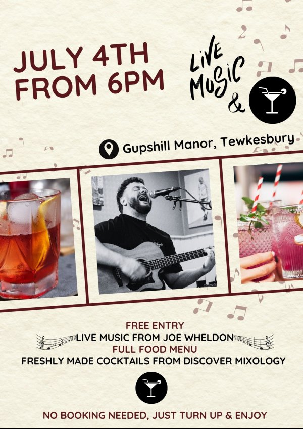 Live Music & Cocktails at Gupshill Manor July 4th - 6 pm