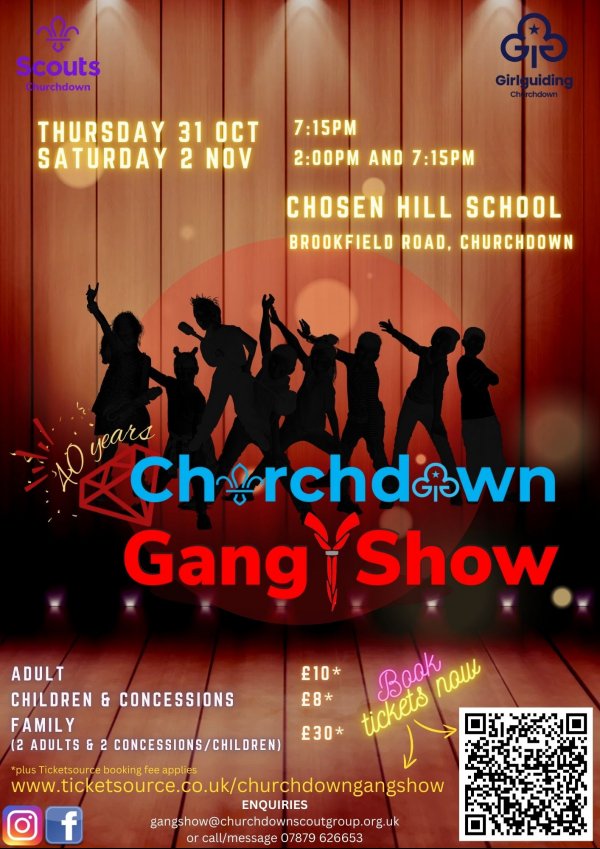 Book your tickets here: https://www.ticketsource.co.uk/churchdowngangshow or alternatively email gangshow@churchdownscoutgroup.org.uk or call/text 07879 626653.