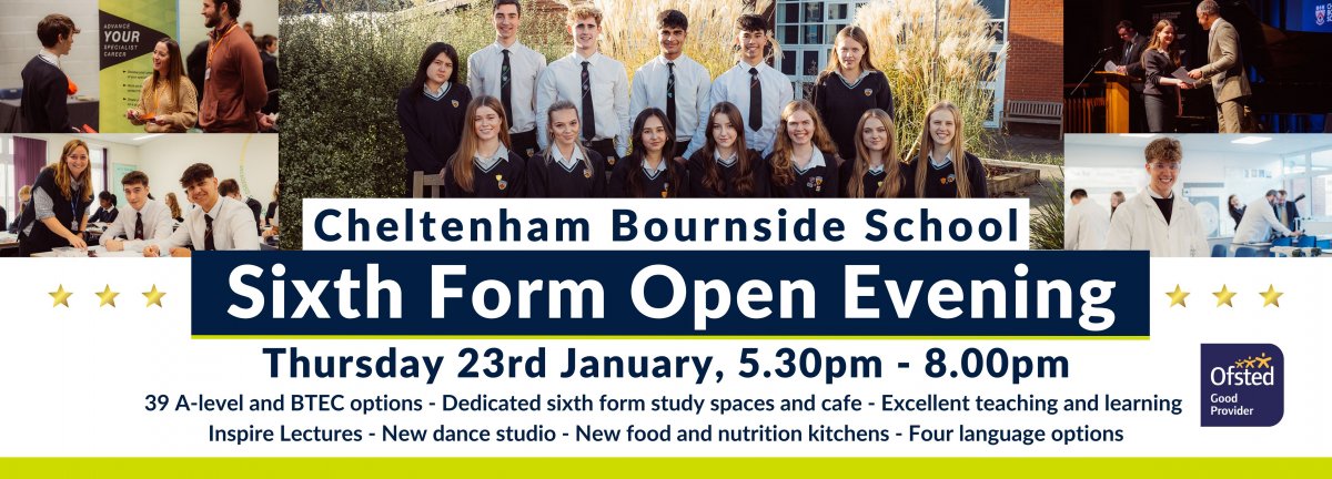 Cheltenham Bournside School's Sixth Form Open Evening takes place on Thursday 23rd January 2025, 5.30pm - 8.00pm.