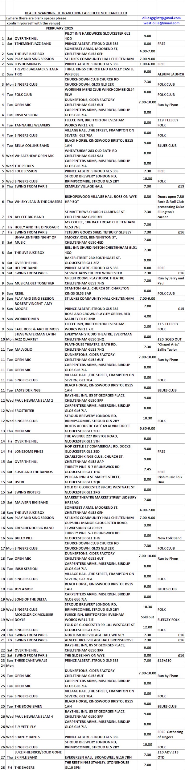 glos.info try to bring you details of the best local events. Amendments to the published details can occur, so please check with the venue if uncertain.