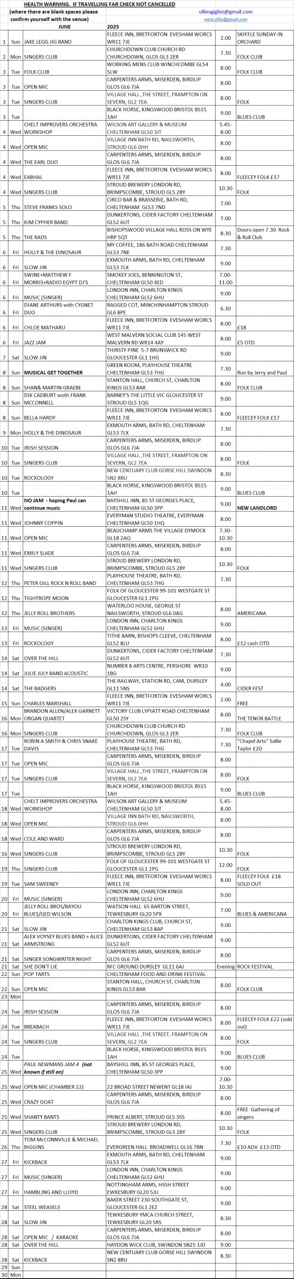 glos.info try to bring you details of the best local events. Amendments to the published details can occur, so please check with the venue if uncertain.