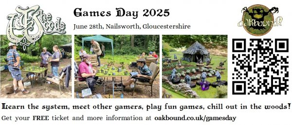 The Woods in the woods is our annual gathering of The Woods players for a day of friendly wargaming on beautiful boards in the heart of the stunning Gloucestershire woodland.