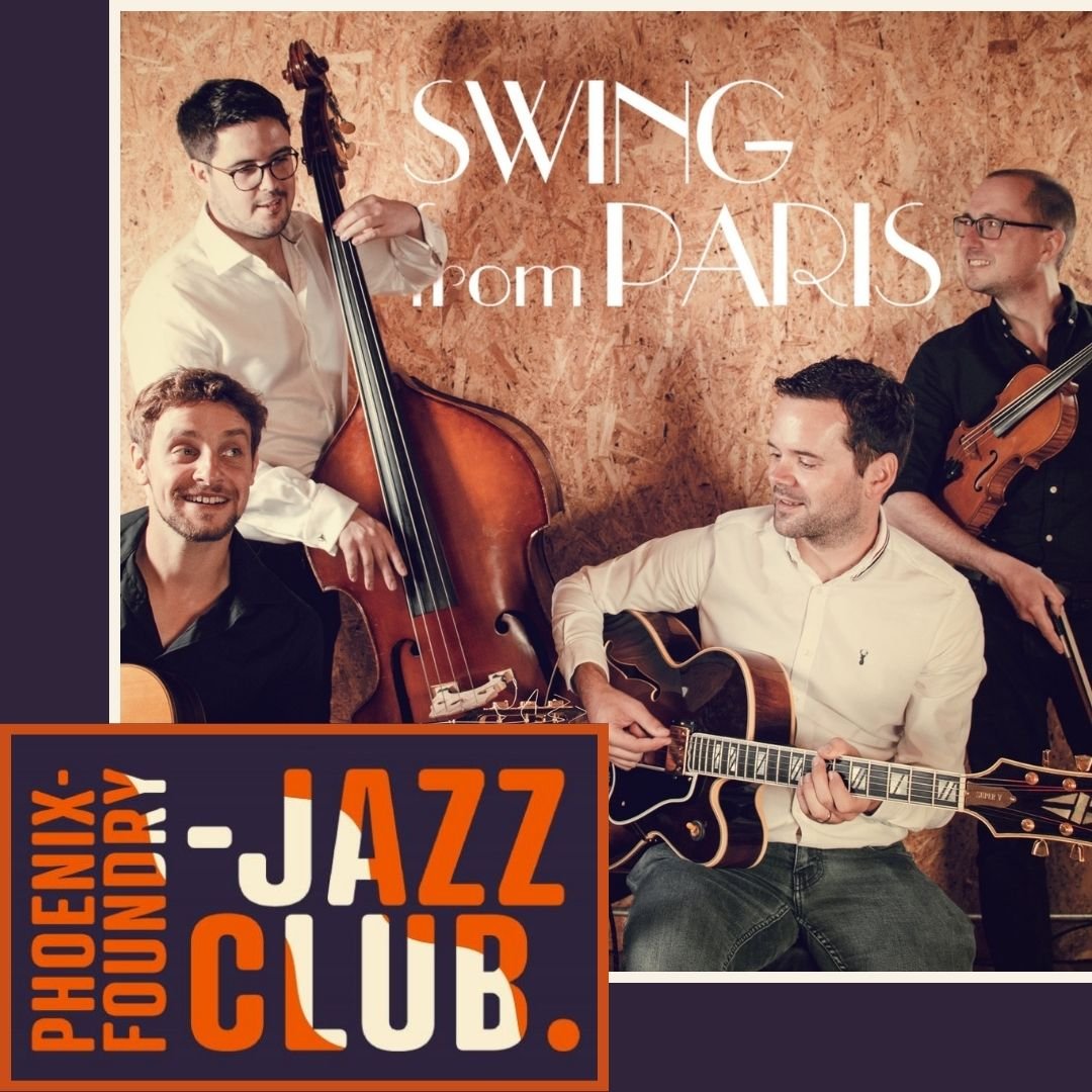 Often described as ‘the finest gypsy jazz in the Cotswolds’, Swing from Paris are a UK quartet of violin, guitars and double bass. Inspired by the great swing bands of the 1930s and ‘40s, they present their own versions of music by Gershwin, Piazzolla, John Lewis, Django Reinhardt, Stéphane Grappelli and the Hot Club of France. They’ve been seen on the BBC’s Hairy Bikers, and have appeared at major jazz festivals including Cheltenham, Brecon and the Django Reinhardt Festival at Samois sur Seine. Expect stylish jazz and vintage swing.