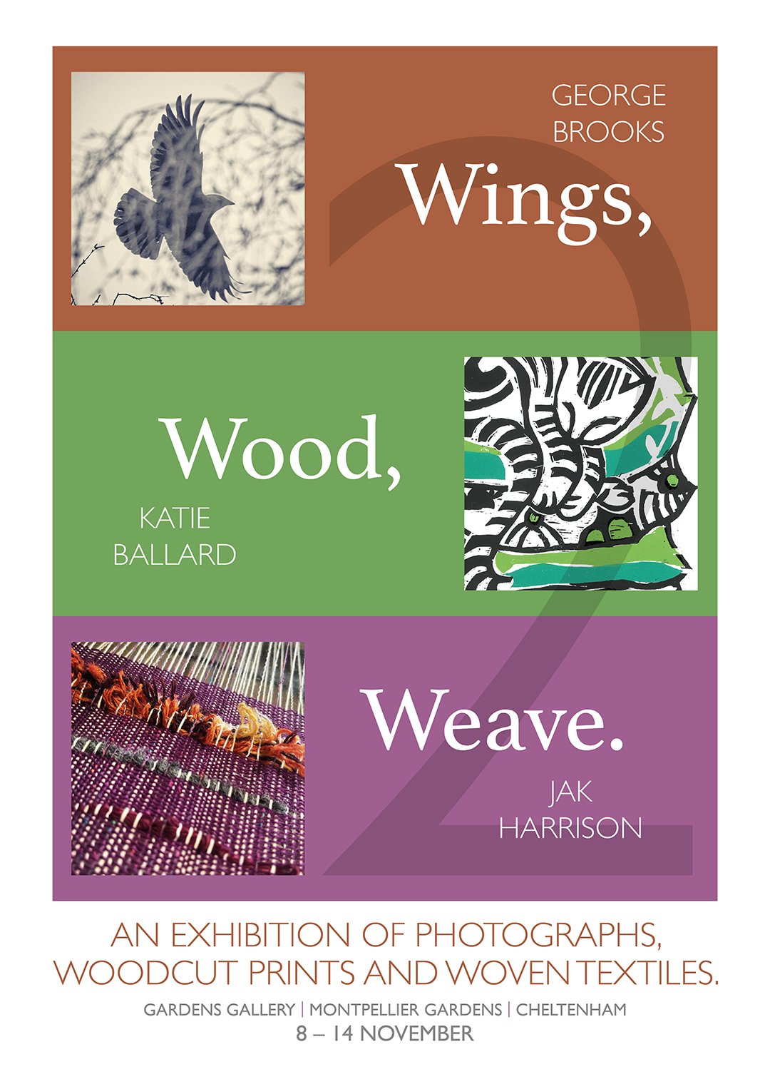 George has been a successful world travelling corporate photographer for 30 years. Katie enjoyed time as an Art Director in a local marketing agency, now self-employed and part owner of nursery supplier Early Years Direct. Jak is a writer, walker and self-taught weaver. George, Katie and Jak are all based in Cirencester, and they have explored hands-on or close-to-home creative activities – perhaps a reflection on the odd times we’ve experienced in recent years. Wings Wood Weave was first shown at the Corinium Museum in Cirencester.