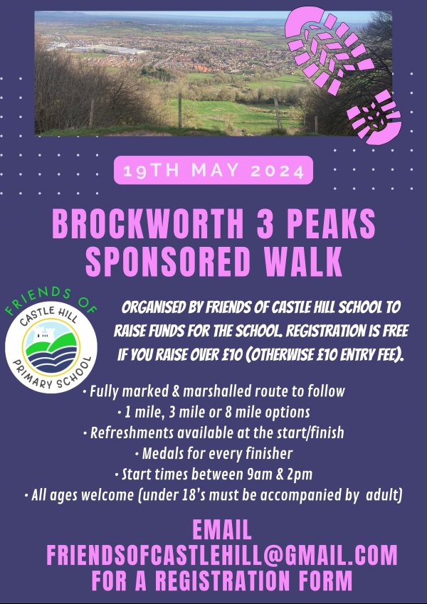 The event takes place on 19th May 2024 starting at Castle Hill School, Brockworth GL3 4NU. Sponsorship is encouraged but you can also pay a registration fee of £10 which is donated to Friends of Castle Hill School. Start training now and get ready to conquer the peaks!
