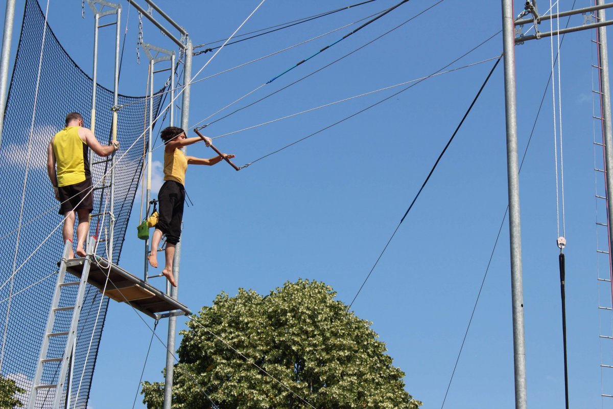 All Bars Flying Trapeze Club offers the chance to fly on the only full size bar-to-bar outdoor flying trapeze rig in Britain.