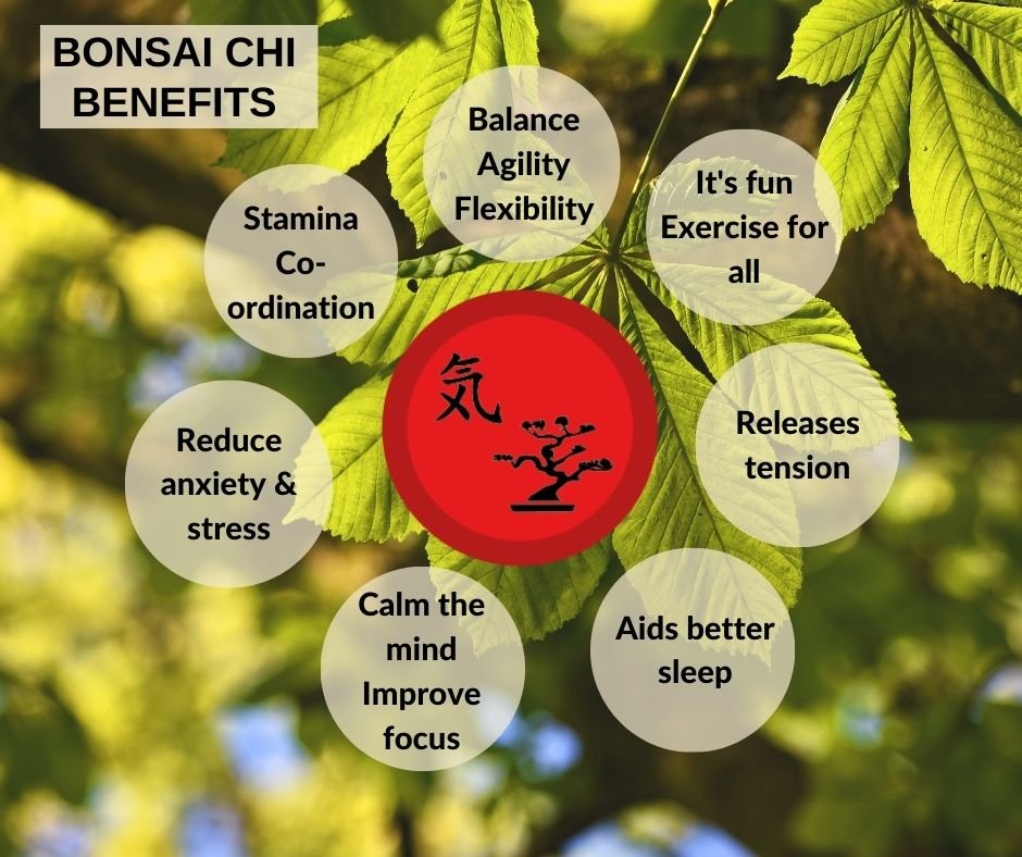 Bonsai Chi is a gentle form of exercise, which will help maintain strength, flexibility and balance, and is an exercise that has no age limit.