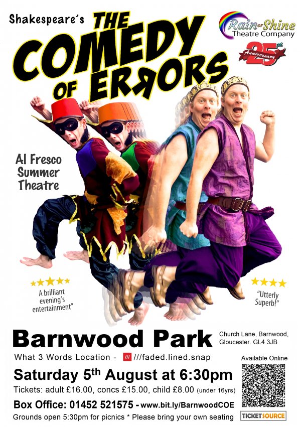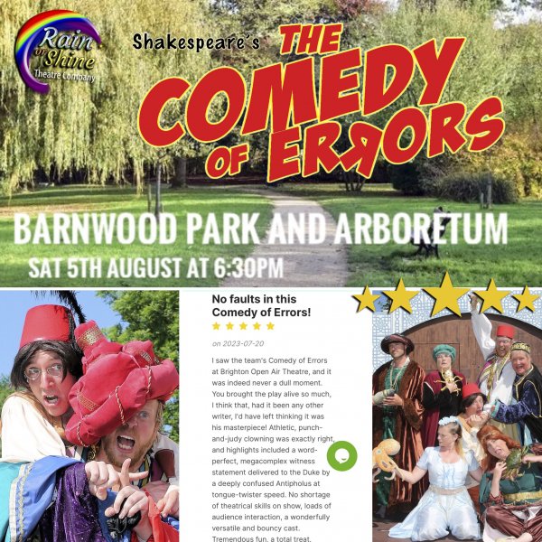 Join Rain or Shine Theatre Co for a fantastic evening of hi-jinks, tomfoolery, fish slapping and comical confusions at Barnwood Park, Gloucester. Don't miss out, buy tickets now: www.bit.ly/BarnwoodCOE or call 01452 521575