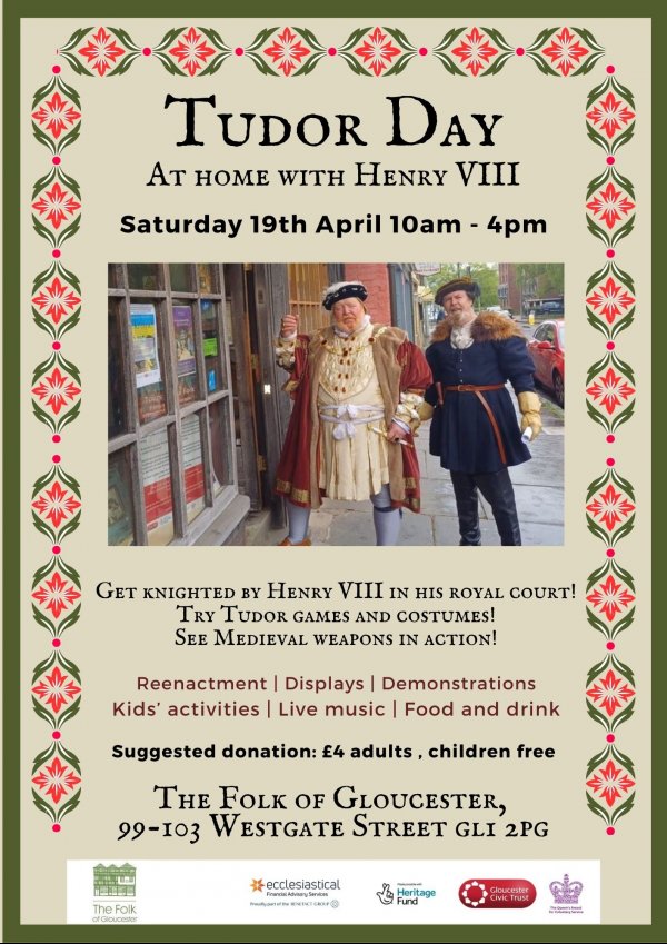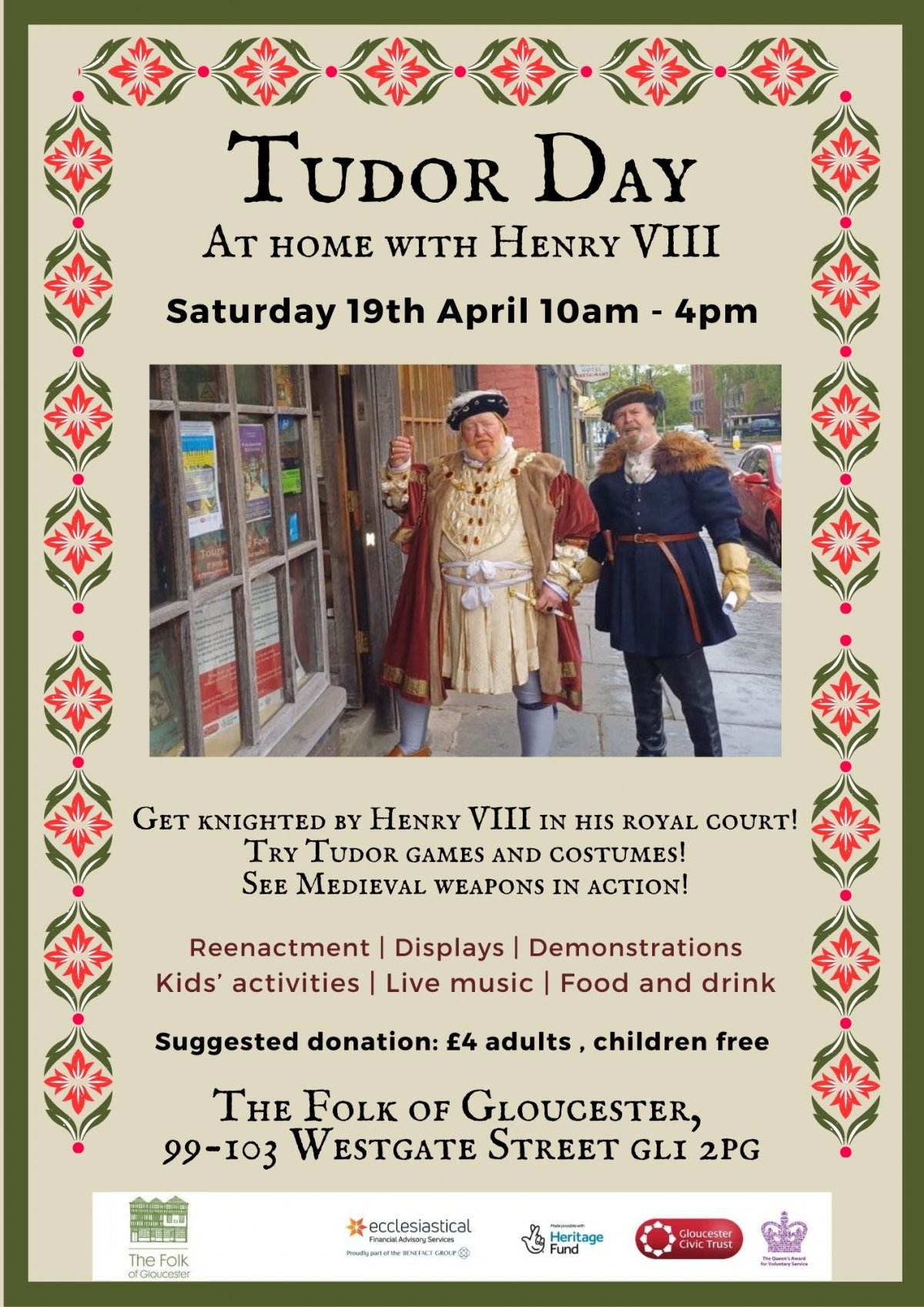 On Saturday the 19th of April, he will be holding court as Henry VIII at Tudor Day at The Folk of Gloucester – a set of historic 16th-century townhouses on Westgate Street. Alongside live music, reenactment, food and drink and children’s activities, visitors will get the chance to be knighted by Henry VIII himself in a formal ceremony.